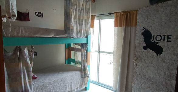 Habitación compartida mixta de cuatro camas(2 cuchetas) en primer piso. Acceso por escalera interna. Balcón con vista al patio. Baño compartido en Pasillo